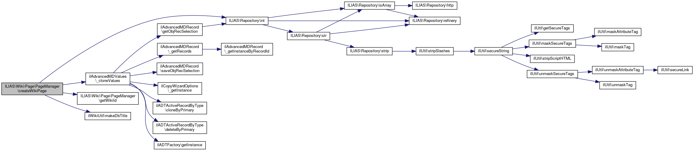 Here is the call graph for this function:| ILIAS\Wiki\Page\PageManager::createWikiPage | ( | string | $title, |