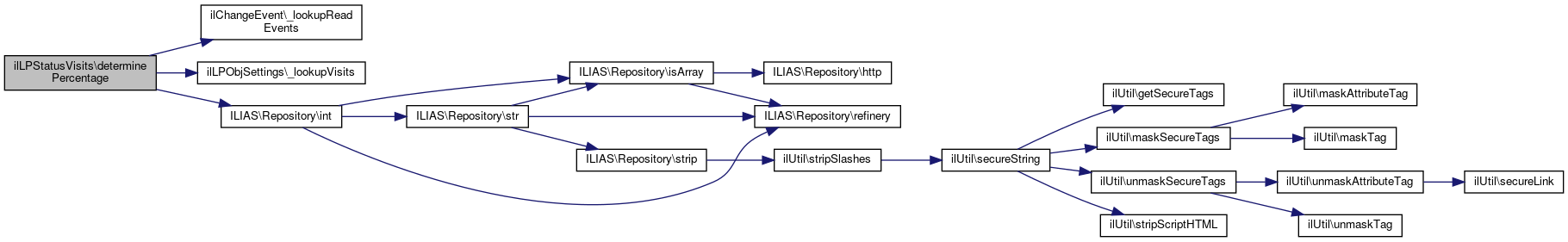 Here is the call graph for this function:| ilLPStatusVisits::determinePercentage | ( | int | $a_obj_id, |
