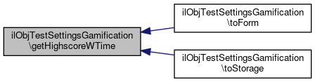 Here is the caller graph for this function:| ilObjTestSettingsGamification::getHighscoreWTime | ( | ) |