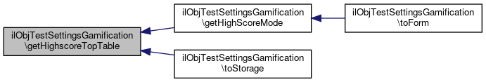Here is the caller graph for this function:| ilObjTestSettingsGamification::getHighscoreTopTable | ( | ) |