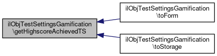 Here is the call graph for this function:| ilObjTestSettingsGamification::getHighscoreAchievedTS | ( | ) |