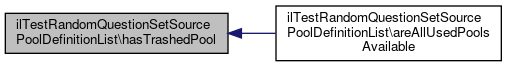 Here is the caller graph for this function:| ilTestRandomQuestionSetSourcePoolDefinitionList::isTrashedPool | ( | int | $pool_id | ) |