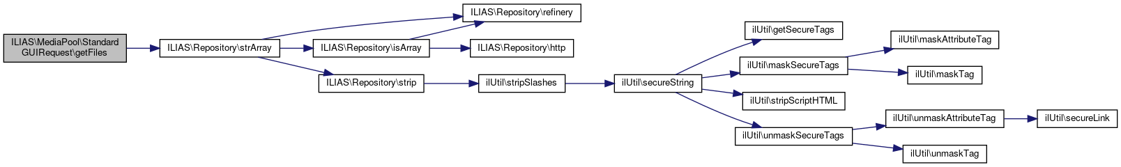Here is the call graph for this function:| ILIAS\MediaPool\StandardGUIRequest::getFiles | ( | ) |