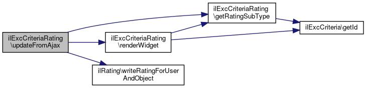 Here is the call graph for this function:| ilExcCriteriaRating::updateFromAjax | ( | ) |