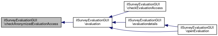 Here is the caller graph for this function:| ilSurveyEvaluationGUI::checkAnonymizedEvaluationAccess | ( | ) |