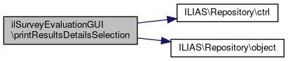 Here is the call graph for this function:| ilSurveyEvaluationGUI::printResultsDetailsSelection | ( | ) |