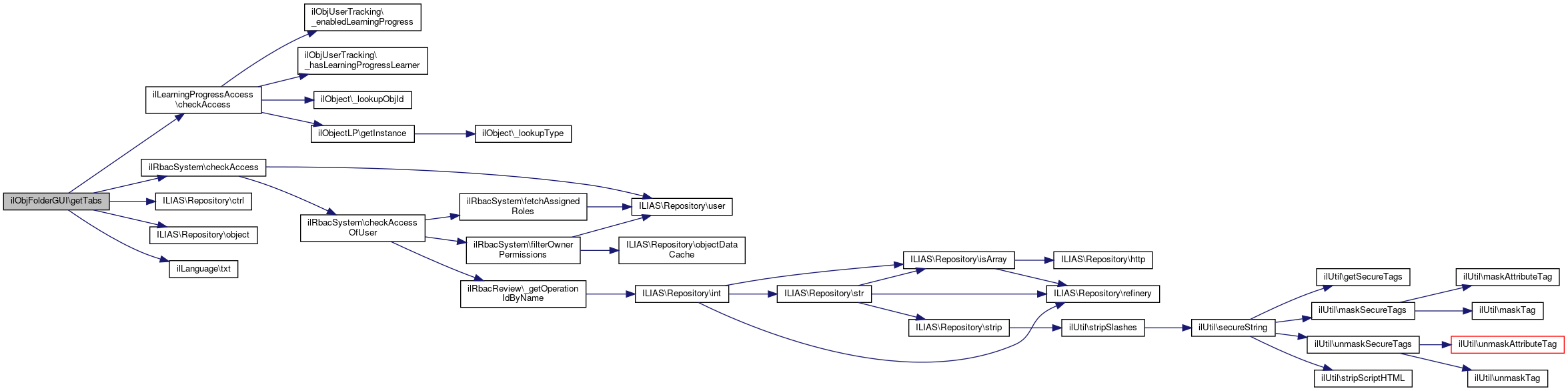References ilContainerGUI\$tabs, and ilObjectGUI\checkPermission().
