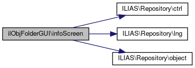 Here is the call graph for this function:| ilObjFolderGUI::infoScreen | ( | ) |