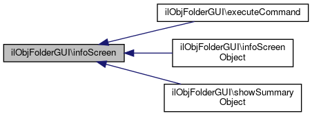 Here is the caller graph for this function:| ilObjFolderGUI::infoScreenObject | ( | ) |