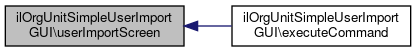Here is the caller graph for this function:| ilOrgUnitSimpleUserImportGUI::userImportScreen | ( | ) |
