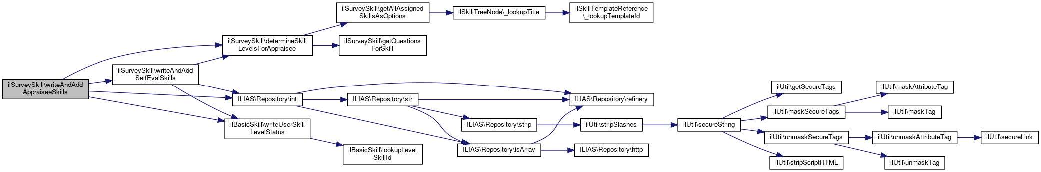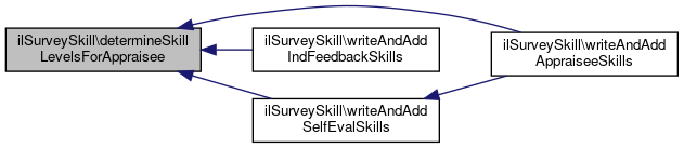 Here is the call graph for this function:| ilSurveySkill::determineSkillLevelsForAppraisee | ( | int | $a_appraisee_id, |