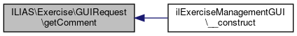 Here is the call graph for this function:| ILIAS\Exercise\GUIRequest::getComment | ( | ) |