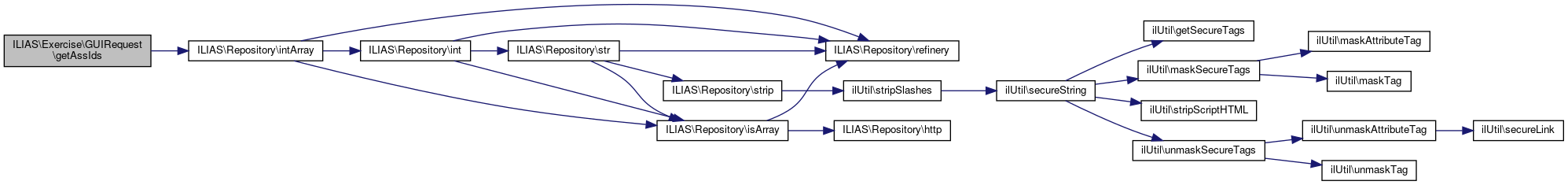 Here is the call graph for this function:| ILIAS\Exercise\GUIRequest::getAssIds | ( | ) |