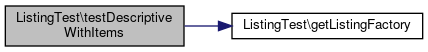 Here is the call graph for this function:| ListingTest::testDescriptiveWithItems | ( | ) |