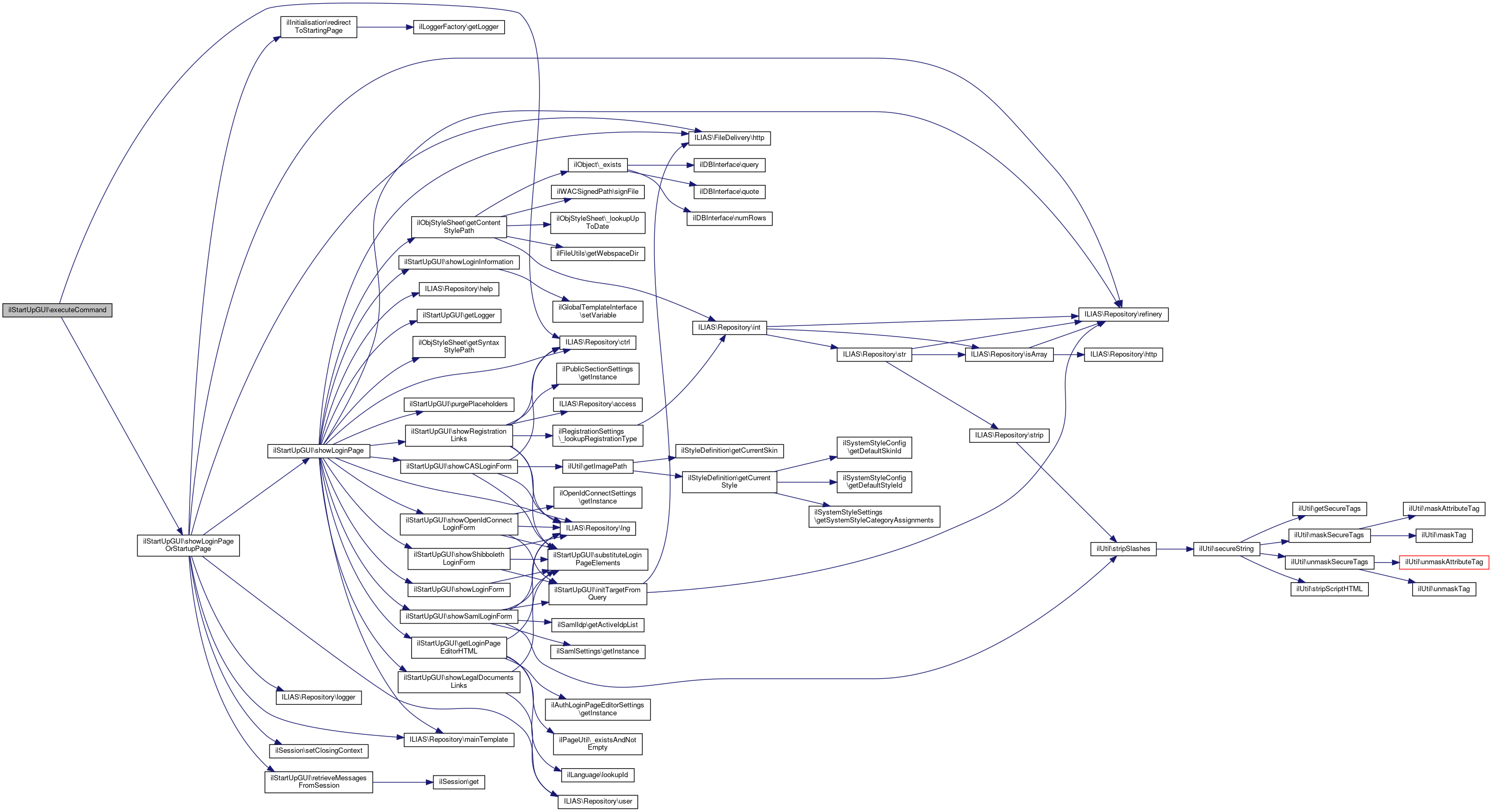 Here is the call graph for this function:| ilStartUpGUI::executeCommand | ( | ) |