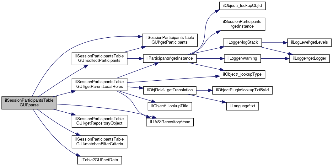 Here is the caller graph for this function:| ilSessionParticipantsTableGUI::parse | ( | ) |