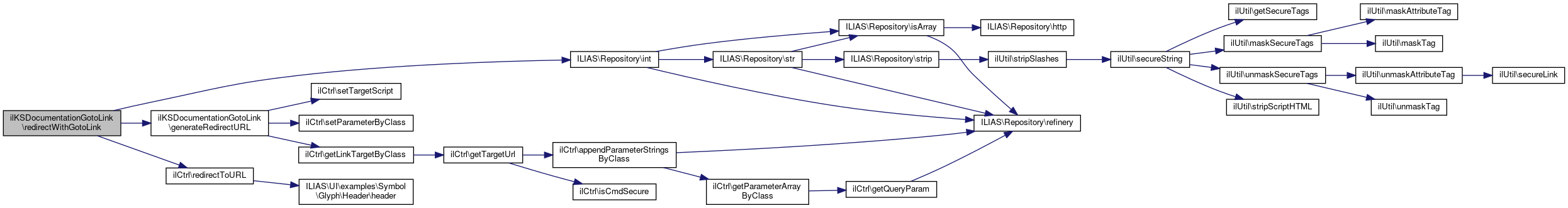 Here is the call graph for this function:| ilKSDocumentationGotoLink::redirectWithGotoLink | ( | string | $ref_id, |