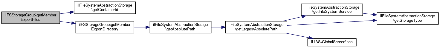 Here is the call graph for this function:| ilFSStorageGroup::getMemberExportFiles | ( | ) |