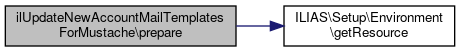 Here is the caller graph for this function:| ilUpdateNewAccountMailTemplatesForMustache::prepare | ( | Environment | $environment | ) |