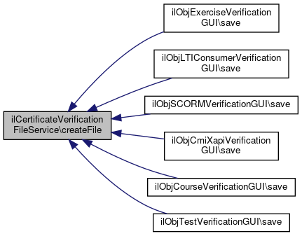Here is the call graph for this function:| ilCertificateVerificationFileService::createFile | ( | ilUserCertificatePresentation | $userCertificatePresentation | ) |