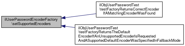 Here is the caller graph for this function:| ilUserPasswordEncoderFactory::setSupportedEncoders | ( | array | $supported_encoders | ) |