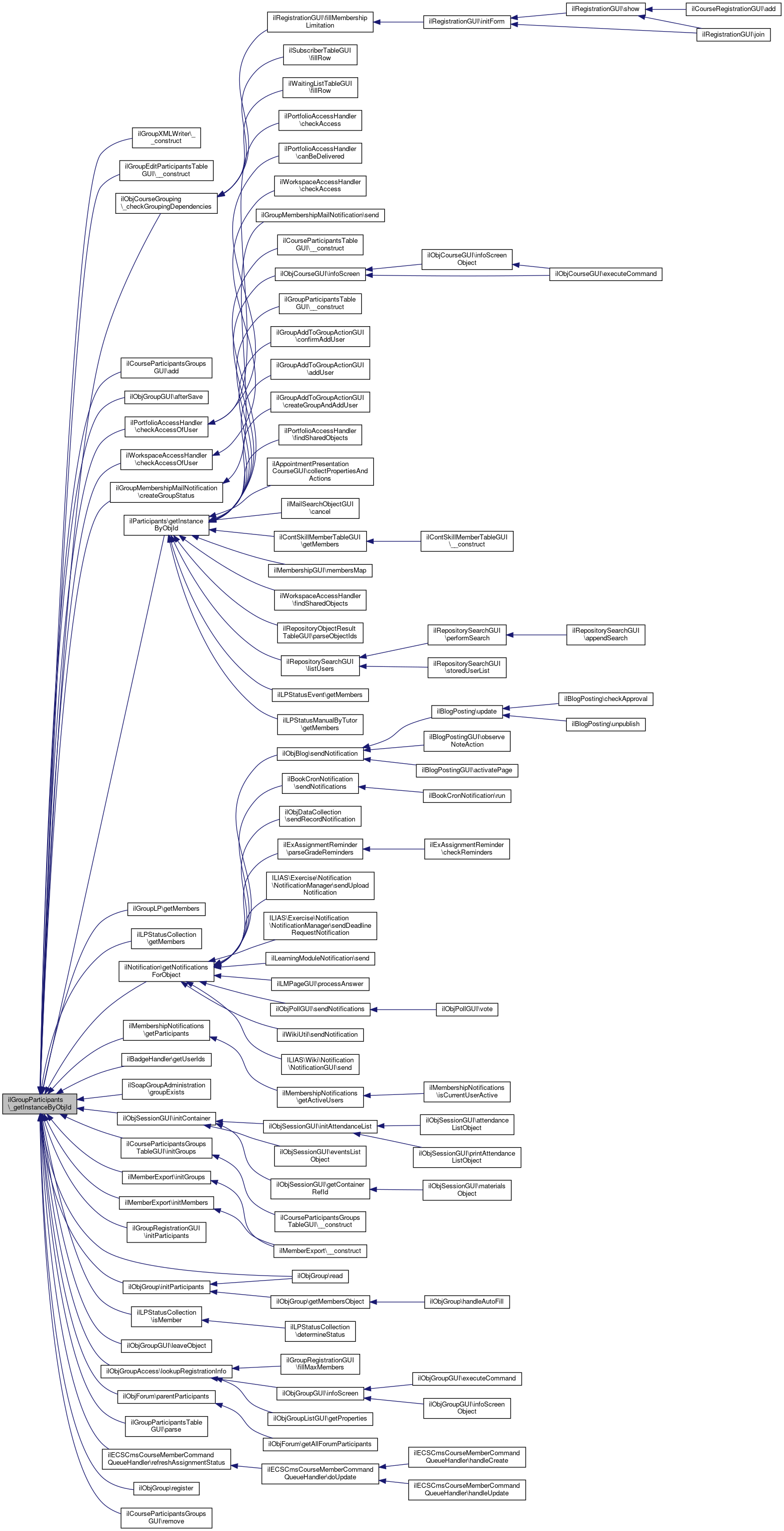 Referenced by ilGroupXMLWriter\__construct(), ilGroupEditParticipantsTableGUI\__construct(), ilObjCourseGrouping\_checkGroupingDependencies(), ilCourseParticipantsGroupsGUI\add(), ilObjGroupGUI\afterSave(), ilPortfolioAccessHandler\checkAccessOfUser(), ilWorkspaceAccessHandler\checkAccessOfUser(), ilGroupMembershipMailNotification\createGroupStatus(), ilParticipants\getInstanceByObjId(), ilGroupLP\getMembers(), ilLPStatusCollection\getMembers(), ilNotification\getNotificationsForObject(), ilMembershipNotifications\getParticipants(), ilBadgeHandler\getUserIds(), ilSoapGroupAdministration\groupExists(), ilObjSessionGUI\initContainer(), ilCourseParticipantsGroupsTableGUI\initGroups(), ilMemberExport\initGroups(), ilMemberExport\initMembers(), ilGroupRegistrationGUI\initParticipants(), ilObjGroup\initParticipants(), ilLPStatusCollection\isMember(), ilObjGroupGUI\leaveObject(), ilObjGroupAccess\lookupRegistrationInfo(), ilObjForum\parentParticipants(), ilGroupParticipantsTableGUI\parse(), ilObjGroup\read(), ilECSCmsCourseMemberCommandQueueHandler\refreshAssignmentStatus(), ilObjGroup\register(), and ilCourseParticipantsGroupsGUI\remove().