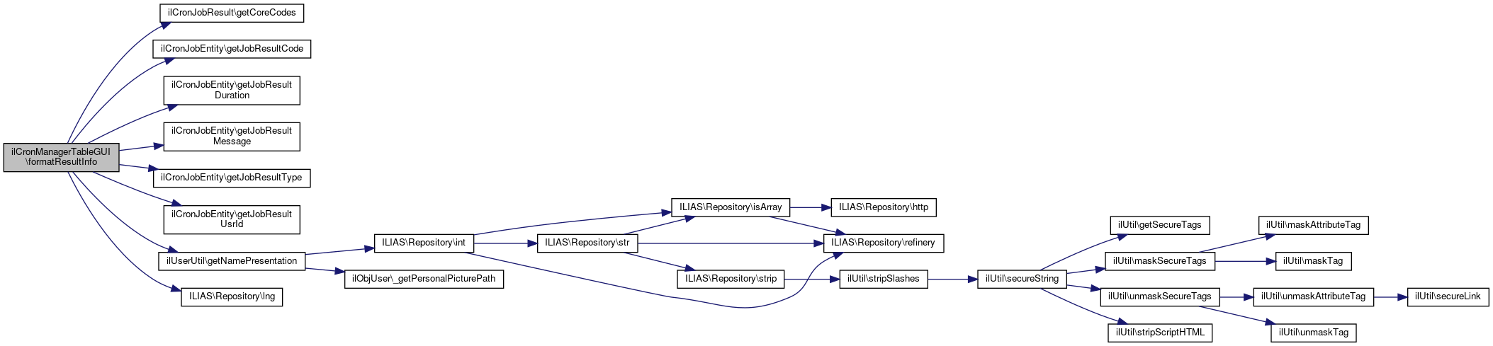 References ilCronJobResult\getCoreCodes(), ilCronJobEntity\getJobResultCode(), ilCronJobEntity\getJobResultDuration(), ilCronJobEntity\getJobResultMessage(), ilCronJobEntity\getJobResultType(), ilCronJobEntity\getJobResultUsrId(), ilUserUtil\getNamePresentation(), and ILIAS\Repository\lng().