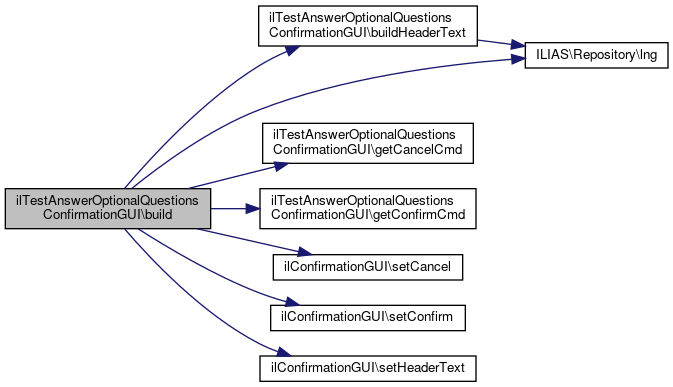 Here is the call graph for this function:| ilTestAnswerOptionalQuestionsConfirmationGUI::build | ( | bool | $isFixedTest | ) |