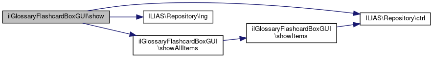 Here is the caller graph for this function:| ilGlossaryFlashcardBoxGUI::show | ( | ) |
