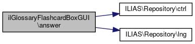 Here is the call graph for this function:| ilGlossaryFlashcardBoxGUI::answer | ( | bool | $correct | ) |