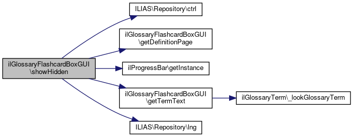 Here is the caller graph for this function:| ilGlossaryFlashcardBoxGUI::showHidden | ( | ) |