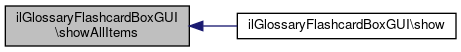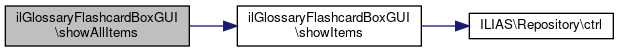 Here is the call graph for this function:| ilGlossaryFlashcardBoxGUI::showAllItems | ( | ) |