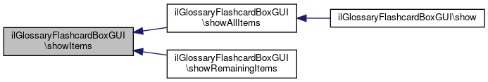 Here is the caller graph for this function:| ilGlossaryFlashcardBoxGUI::showRemainingItems | ( | ) |