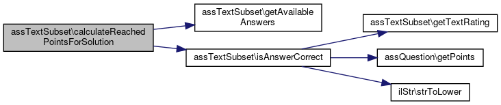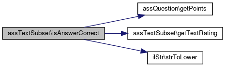 Here is the call graph for this function:| assTextSubset::isAnswerCorrect | ( | $answers, | |