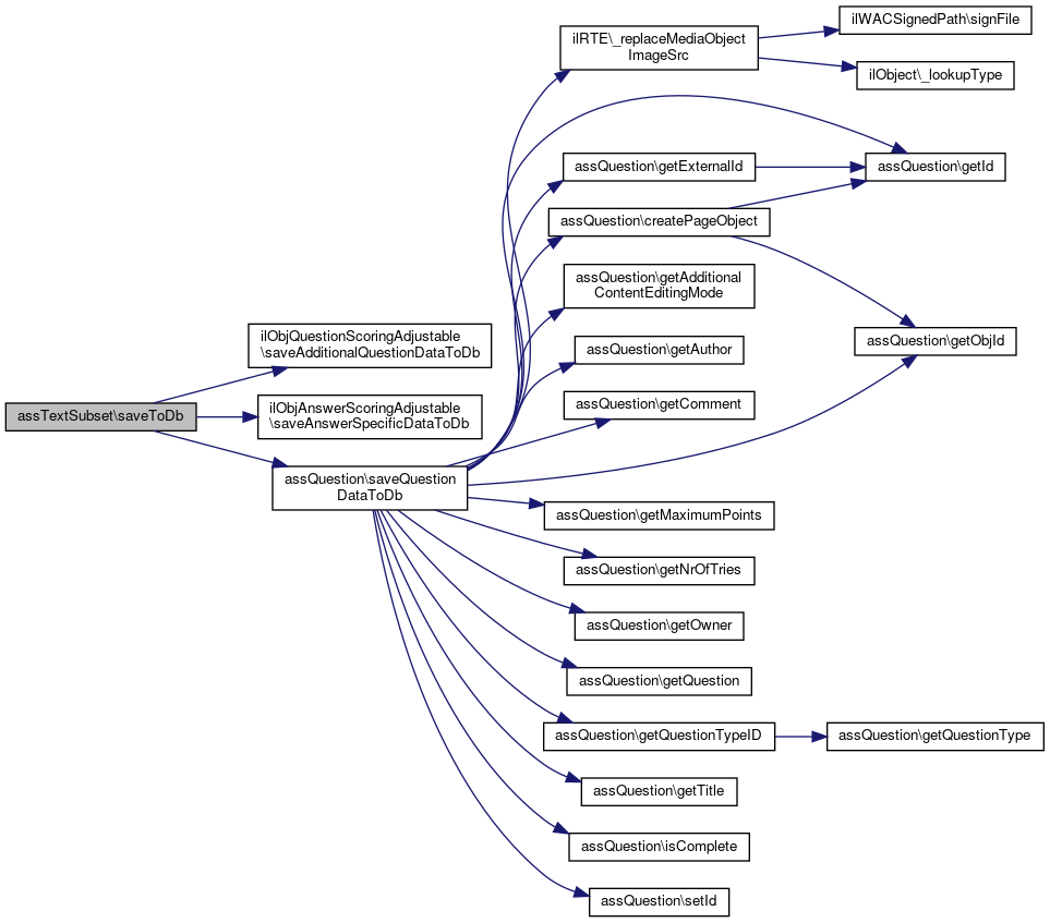 Here is the call graph for this function:| assTextSubset::saveToDb | ( | $original_id = "" | ) |