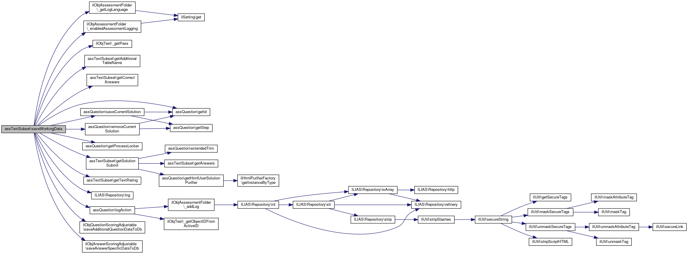 Here is the call graph for this function:| assTextSubset::saveWorkingData | ( | $active_id, | |