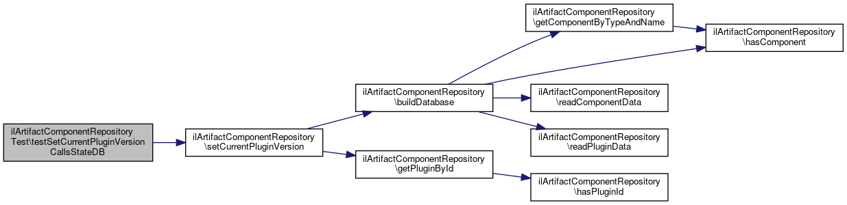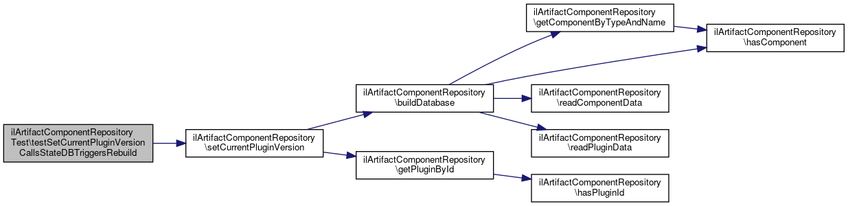 Here is the call graph for this function:| ilArtifactComponentRepositoryTest::testSetCurrentPluginVersionCallsStateDBTriggersRebuild | ( | ) |
