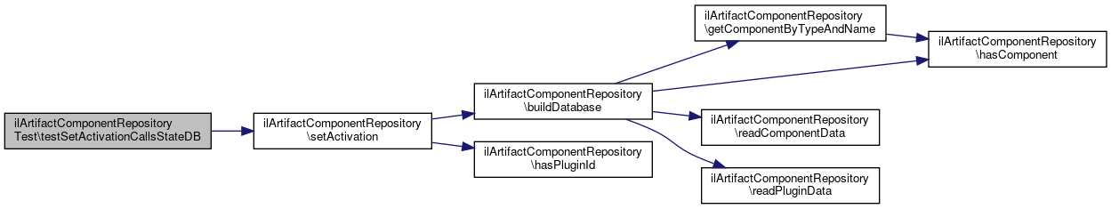 Here is the call graph for this function:| ilArtifactComponentRepositoryTest::testSetActivationCallsStateDB | ( | ) |