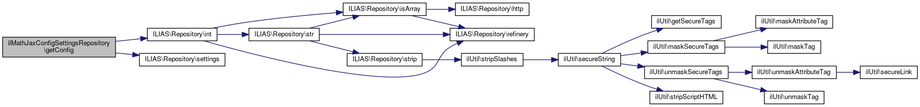 Here is the call graph for this function:| ilMathJaxConfigSettingsRepository::getConfig | ( | ) |