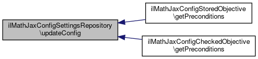 Here is the caller graph for this function:| ilMathJaxConfigSettingsRepository::updateConfig | ( | ilMathJaxConfig | $config | ) |