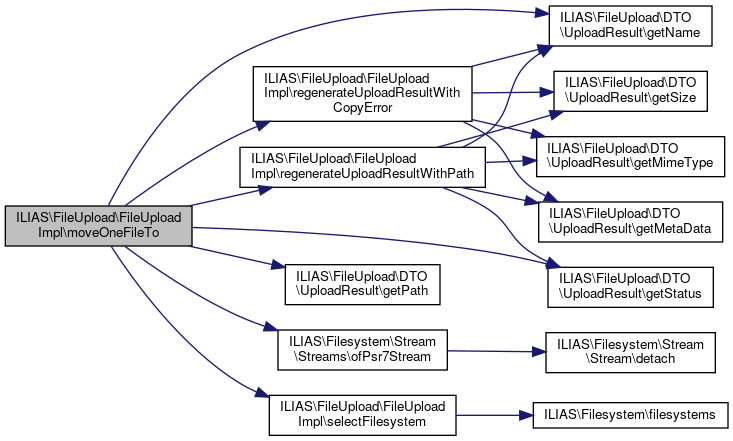 Here is the call graph for this function:| ILIAS\FileUpload\FileUploadImpl::moveOneFileTo | ( | UploadResult | $uploadResult, |