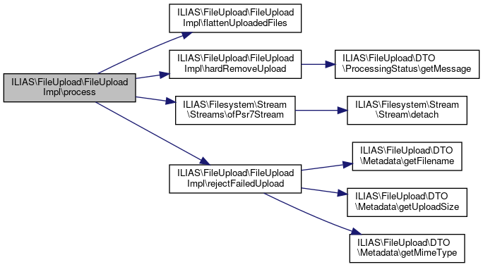 Here is the call graph for this function:| ILIAS\FileUpload\FileUploadImpl::process | ( | ) |
