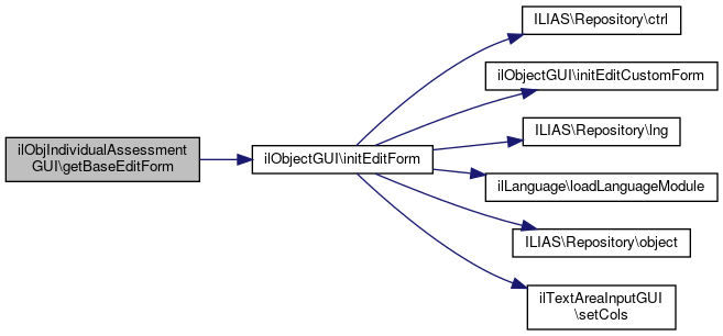 Here is the call graph for this function:| ilObjIndividualAssessmentGUI::getBaseEditForm | ( | ) |