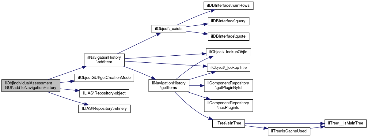 Here is the caller graph for this function:| ilObjIndividualAssessmentGUI::addToNavigationHistory | ( | ) |