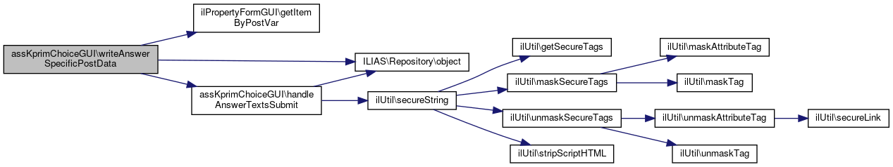Here is the call graph for this function:| assKprimChoiceGUI::writeAnswerSpecificPostData | ( | ilPropertyFormGUI | $form | ) |