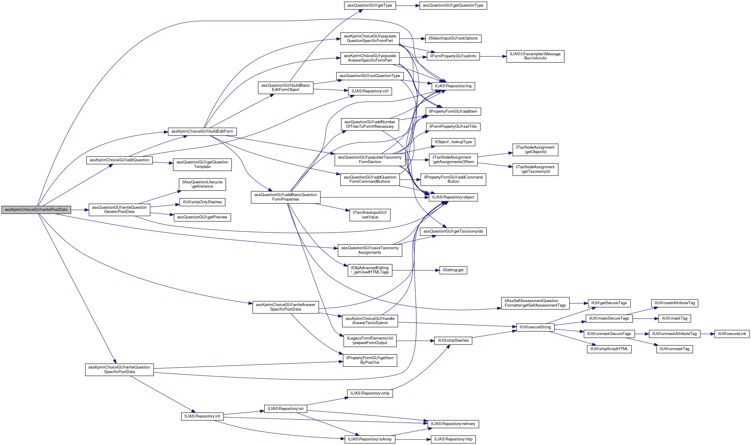 Here is the caller graph for this function:| assKprimChoiceGUI::writeQuestionSpecificPostData | ( | ilPropertyFormGUI | $form | ) |