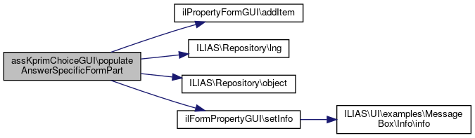 Here is the caller graph for this function:| assKprimChoiceGUI::populateAnswerSpecificFormPart | ( | ilPropertyFormGUI | $form | ) |
