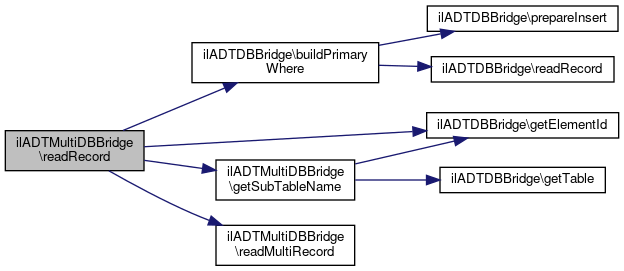 Here is the caller graph for this function:| ilADTMultiDBBridge::readRecord | ( | array | $a_row | ) |