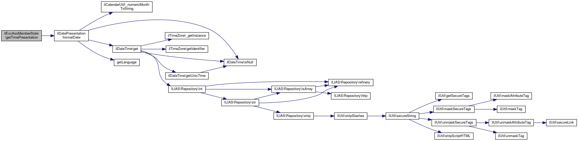 Here is the call graph for this function:| ilExcAssMemberState::getRemainingTimePresentation | ( | ) |