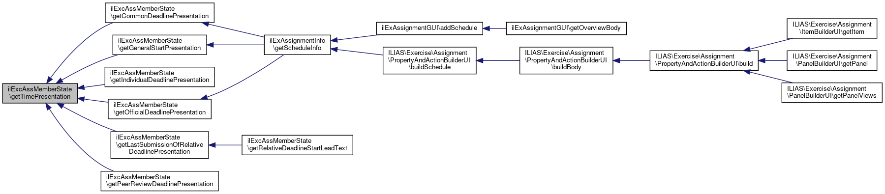 Here is the caller graph for this function:| ilExcAssMemberState::getPeerReviewDeadlinePresentation | ( | ) |